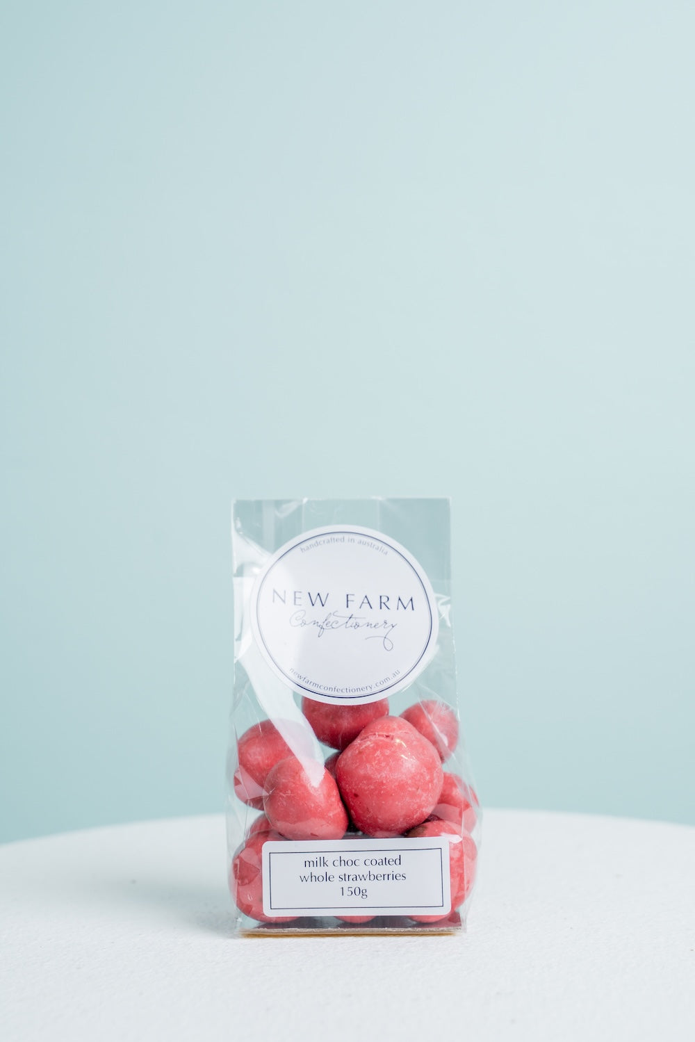 Milk chocolate coated whole strawberries 150g. Handcrafted in Australia.